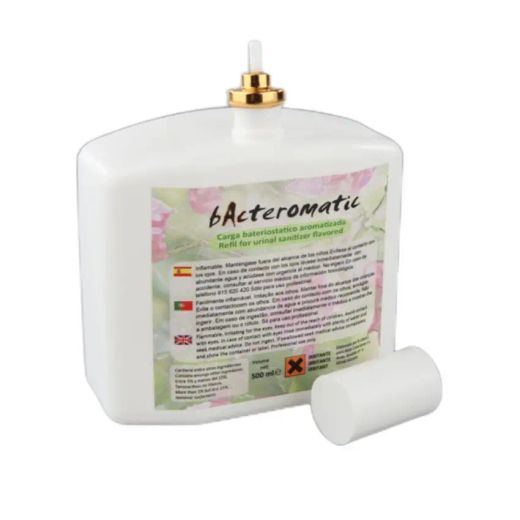 Carga para Bacteriostático Aroma Floral o mandarina son Pack 8 unidades, Carga de 500 ml Perfume floral para dispensadores bacteriostáticos, baños públicos de centros comerciales, oficinas, bares y restaurantes.