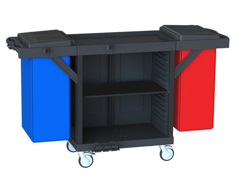 Carro limpieza para hotel doble saco de 120 litros muy equipado para servicio de habitaciones