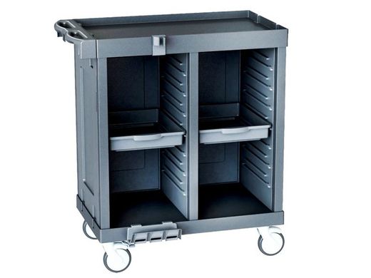 Carro hotel para limpieza de habitaciones con dos bandejas de plastico y ruedas giratorias