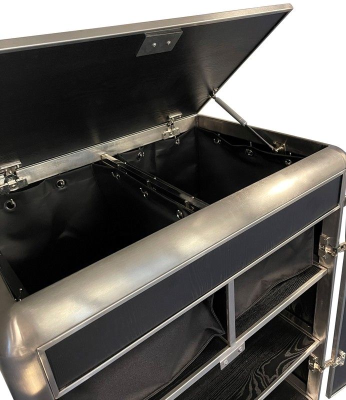 Carro de camarera para servicio de habitaciones fabricado en acero inoxidable y madera de Color gris de textura madera. Ruedas con freno Medidas:77x53x129cm Oferta hasta final de Stock