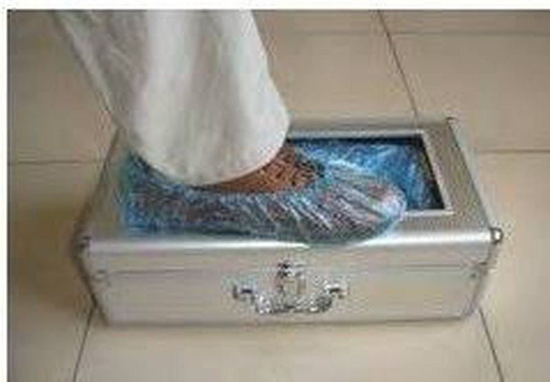 Dispensador Cubre zapatos automático aluminio, capacidad 60 calzas, se vende en caja de 100 Unidades.