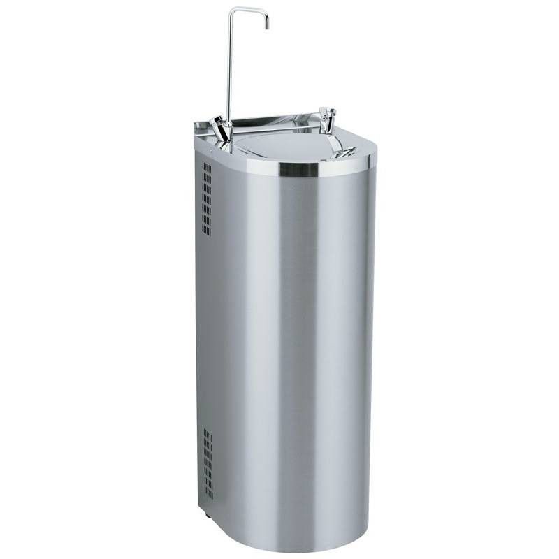 Fuente de agua fabricada en acero inoxidable, para llenado de vasos y llenado de botellas. Ideal para instalar espacios públicos, centros educativos, centros sanitarios y deportivos.