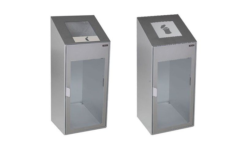 Papelera Altea de seguridad para colocar en sitios públicos de puerta frontal con ventana de policarbonato transparente que permite ver su interior.