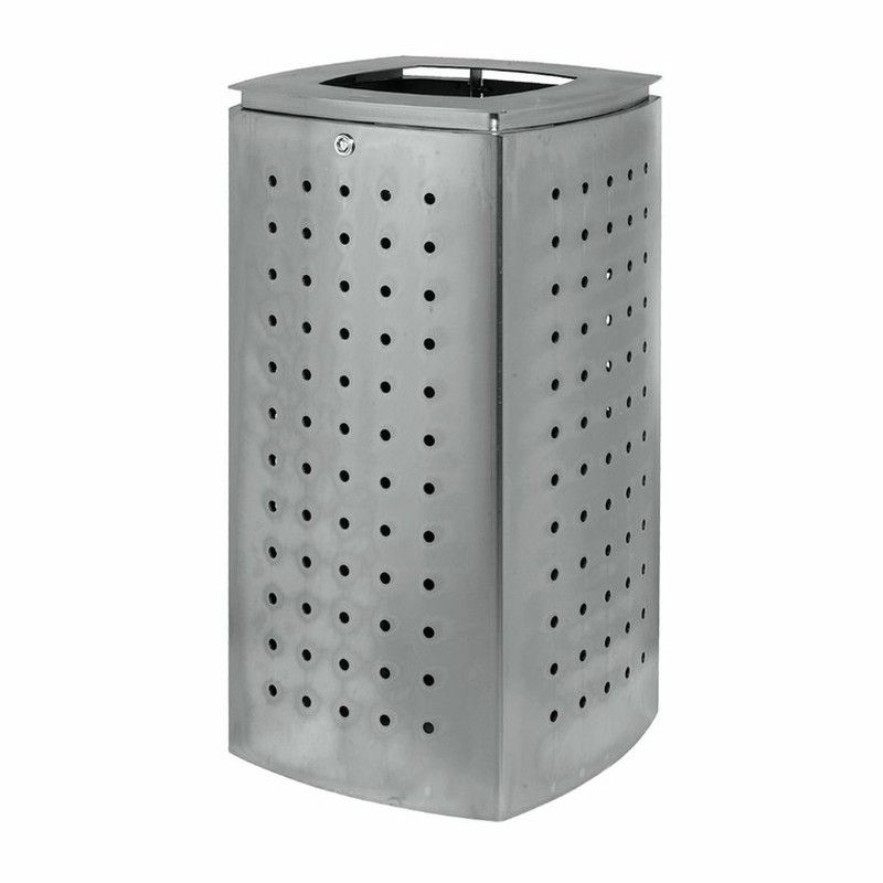 Papelera galvanizada perforada, con tapa abatible y cierre y cubeta interior capacidad 56lts